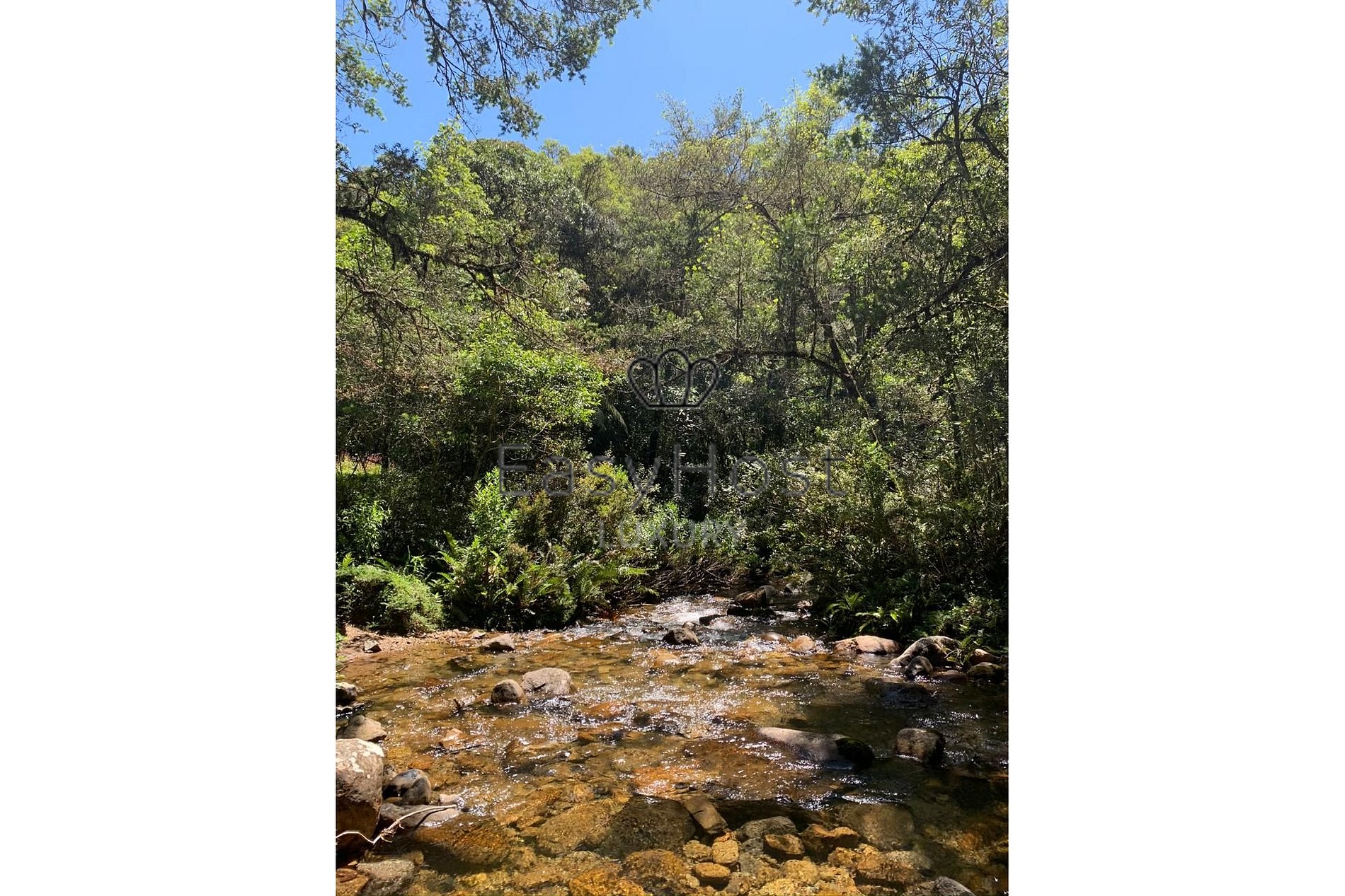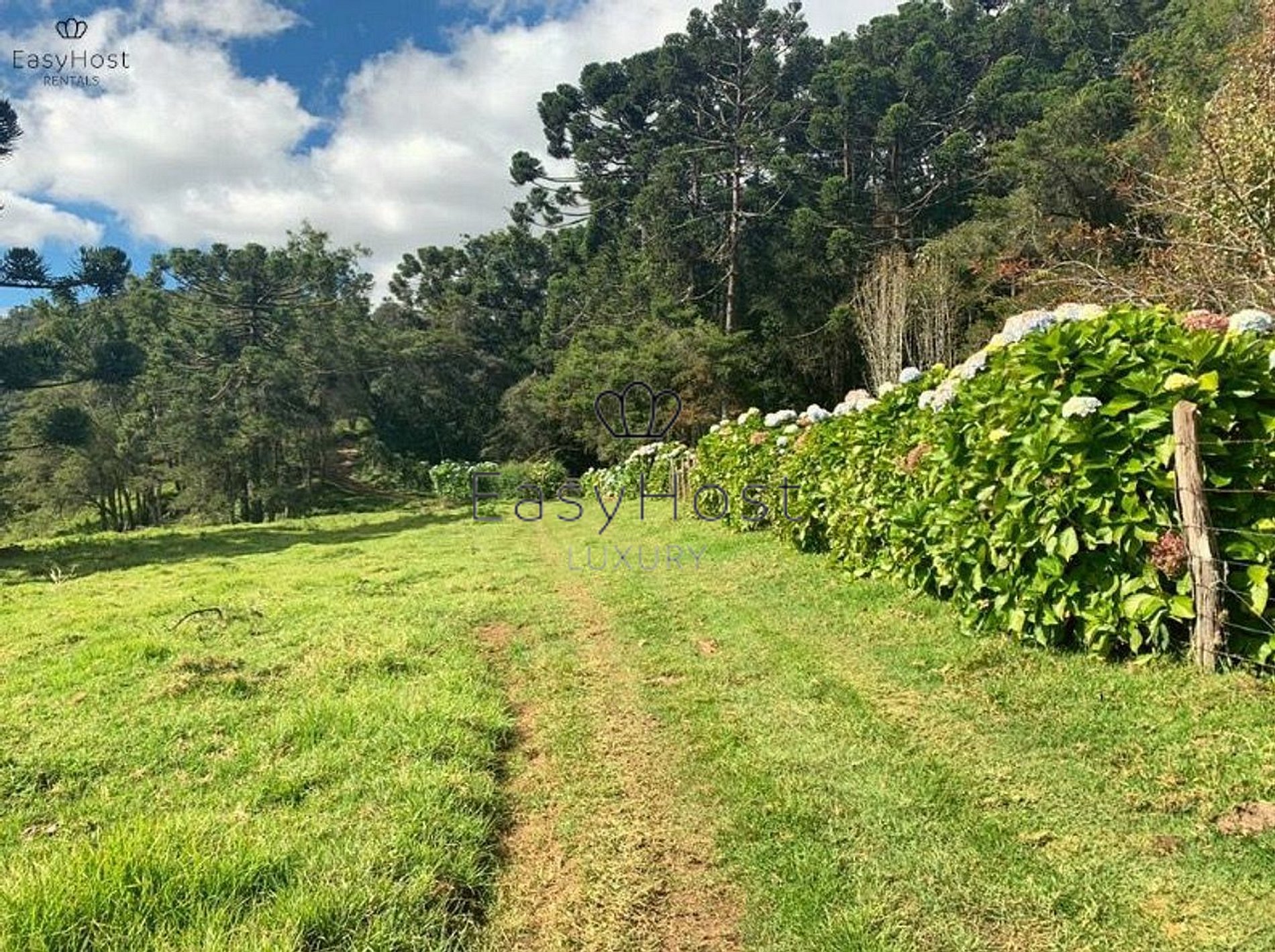 The land is flat, with access to trails and waterfalls in the region. It has electricity and solar power, high-speed internet, and a gas boiler.