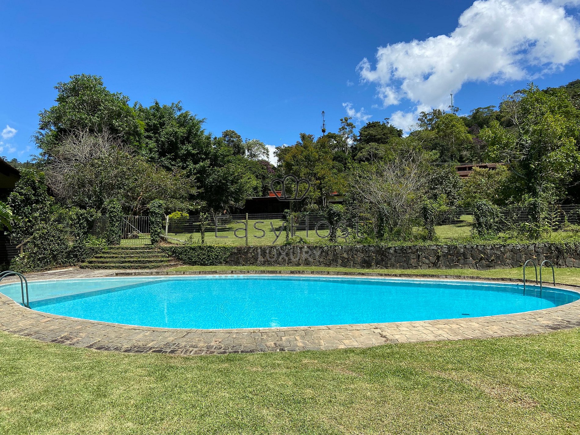 O que mais me encantou foi o tamanho do jardim e a floresta ao redor. Piscina bem grande também. A funcionária Gesica cozinha muito bem e foi super prestativa. A variedade de jogos tornou nossas noites bem divertidas. A sala de estar e jantar são bem espaçosas e decoradas com artigos antigos bem interessantes. O único ponto negativo é só ter 2 banheiros próximos aos quartos. O outro banheiro fica na cozinha. Achei o box apertado e a torneira da pia não dava pra regular a temperatura. Ou ficava muito quente ou muito fria. Mas vale muito a pena e certamente voltaremos. Obrigada a todos