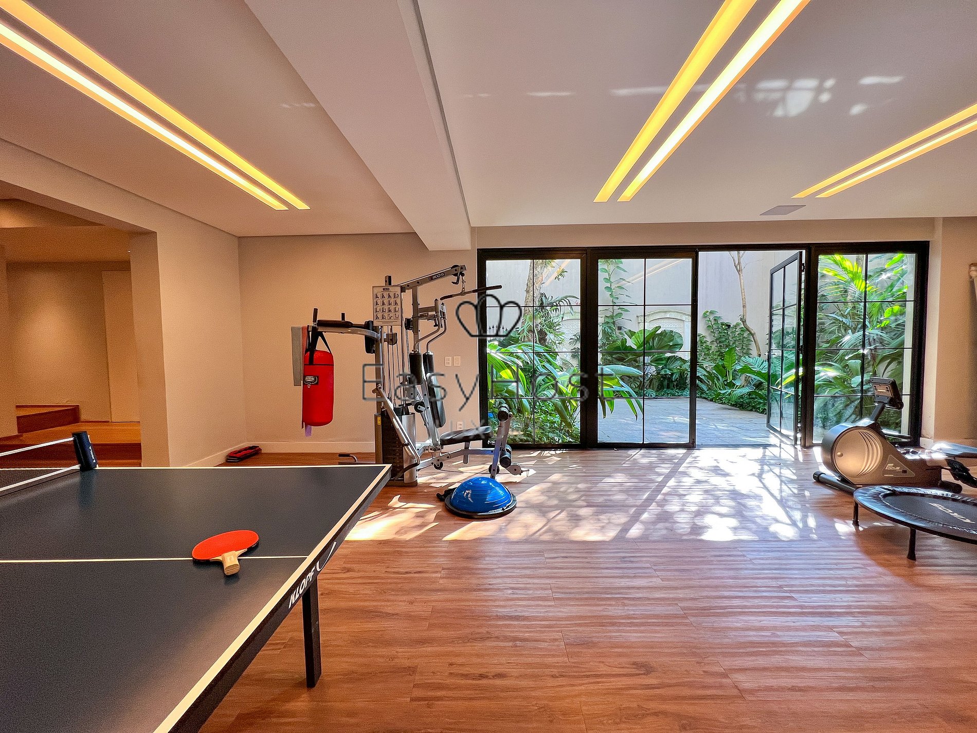 El gimnasio con sala de juegos y jardín de invierno se encuentran en la planta baja.